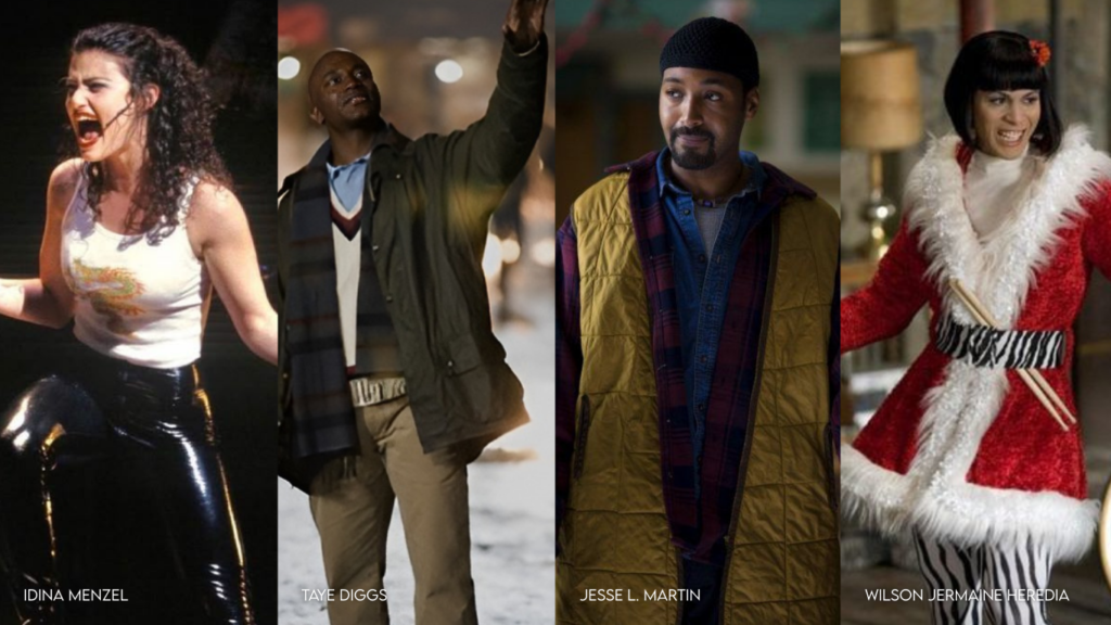 A seleção dos atores foi um processo demorado que levou cerca de quatro a cinco meses. Todos queriam ter certeza de que estavam escalando as pessoas que pudessem incorporar e dar vida aos personagens. Foi nesse período que surgiram nomes como Idina Menzel (Maureen), Taye Diggs (Benny), Jesse L. Martin (Tom), Wilson Jermaine Heredia (Angel), Adam Pascal (Roger) e Fredi Walker-Browne (Joanne), ao lado de Daphne Rubin-Vega (Mimi) e Anthony Rapp (Mark).
